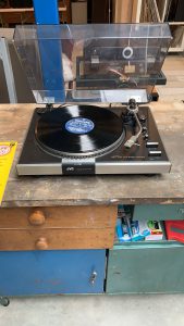 Ook vele Japanse juweeltjes bevinden zich in onze collectie. Deze JVC is daar een voorbeeld van. Een prachtige Direct Drive met heel bijzonder, een stroboscoop verlichting voor 33 toeren bij 50 en 60 Hz, maar de 45 rpm moet met behulp van de originele schijf op de draaitafelmat afgelezen worden! Hij werd helemaal nagekeken afgeleverd inclusief een zelf gemaakte versteviging voor de armlift die afgebroken bleek bij inspectie. Maar helaas bleek de snelheid bij 45 toeren al ras niet meer goed te regelen en de pitch regelaar zat bij 33 rpm bijna aan het einde van zijn regelbereik. Dus is hij weer mee retour genomen en voorzien van 2 nieuwe potmeters waarmee alle euvels nu zijn opgelost. Wij testen de apparatuur enkele uren maar na jaren stilstand kan er wanneer u serieus gaat spelen toch nog een defect opduiken. Daarvoor kunt u 2 maanden volledige garantie op het hele apparaat bij ons afsluiten. Overigens, in geval zich een defect zou voordoen dat wij niet meer kunnen repareren dan ontvangt u het hele aanschafbedrag terug. Dat is nu in 9 maanden gelukkig maar 1 keer nodig gebleken, en achteraf had het eigenlijk niet eens gehoeven, wij leren ook nog.